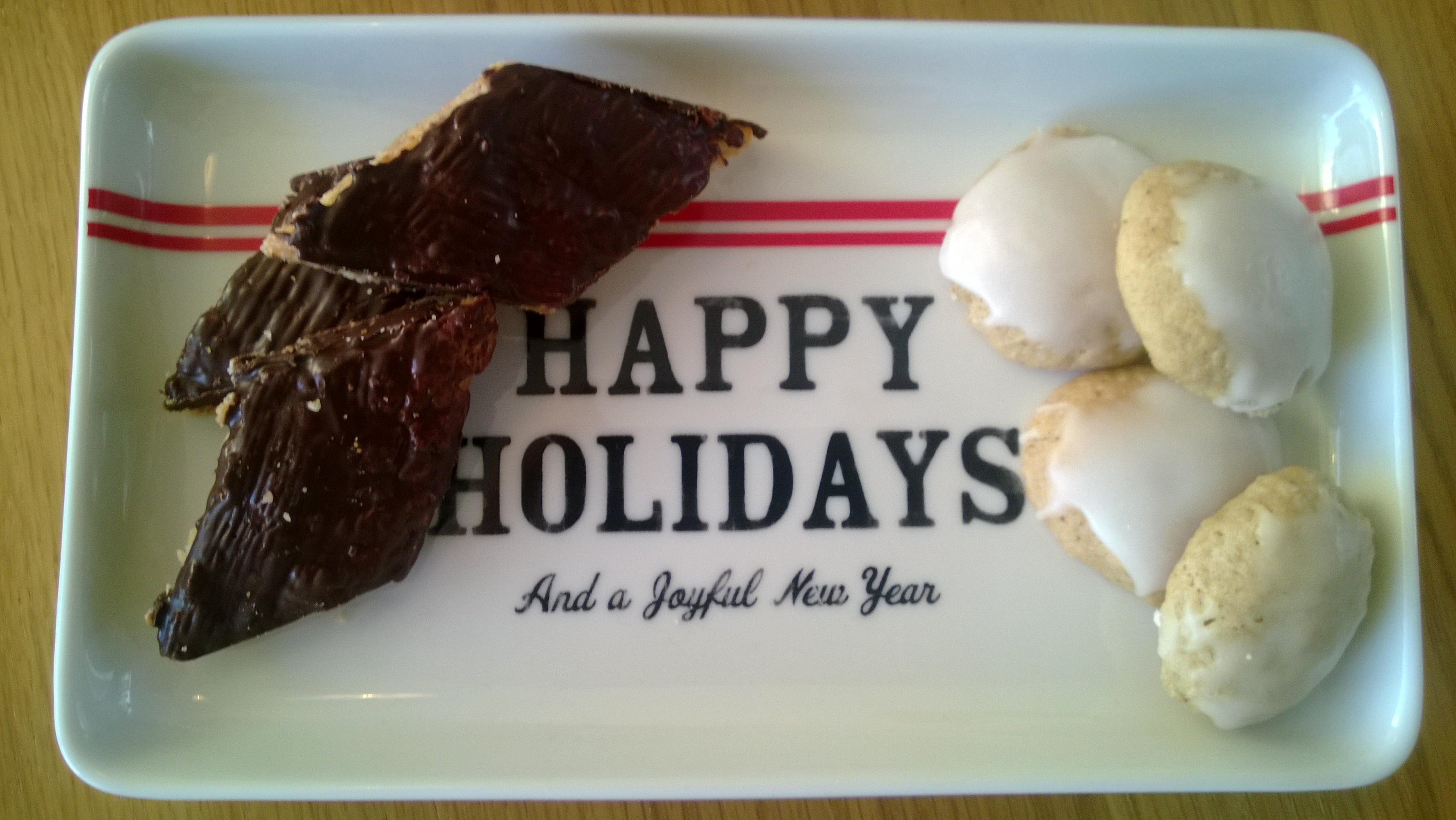 Doch was passt da besser, als es sich zuhause weihnachtlich gemütlich zu machen? Und weil der Adventsbesuch aufgrund oben erwähnter ausgefallener Flüge noch etwas länger als eigentlich geplant gestrandet war, konnte ich, ganz wie früher, mit Mama Kekse backen! Die Wahl fiel auf einen Klassiker – Pfeffernüsse (dänisch: pebernød). Zusätzlich wollte ich auch noch ein neues Rezept für weihnachtliche Erdnuss-Rauten ausprobieren. So wurde der Ofen angeworfen und blecheweise Leckereien produziert, und am Ende konnten wir eine Masse an Keksen vorweisen, von denen auch gleich ein guter Teil noch warm vernascht wurde!