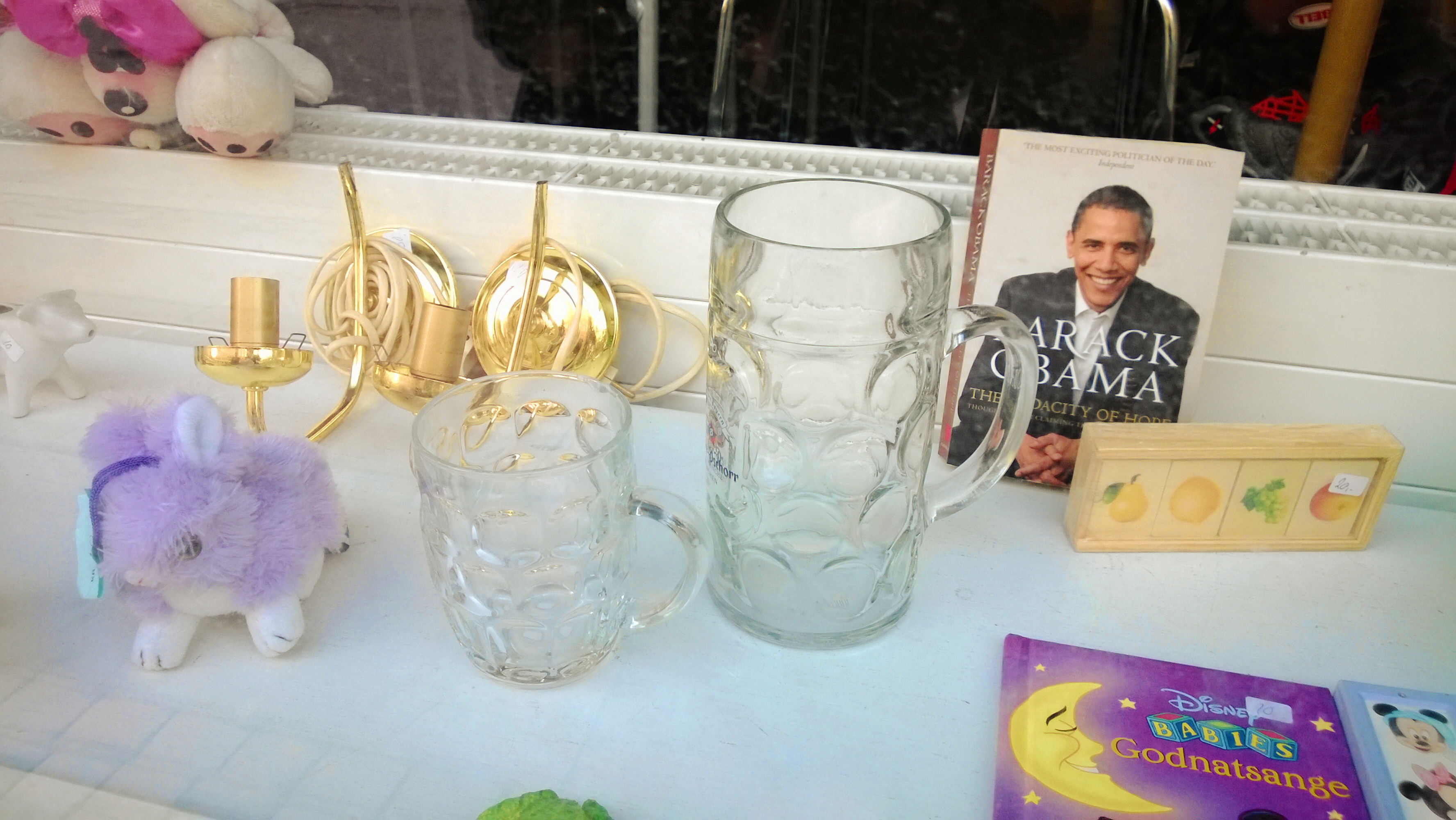 Obama and the fluffy bunny (selection in a second-hand store window)