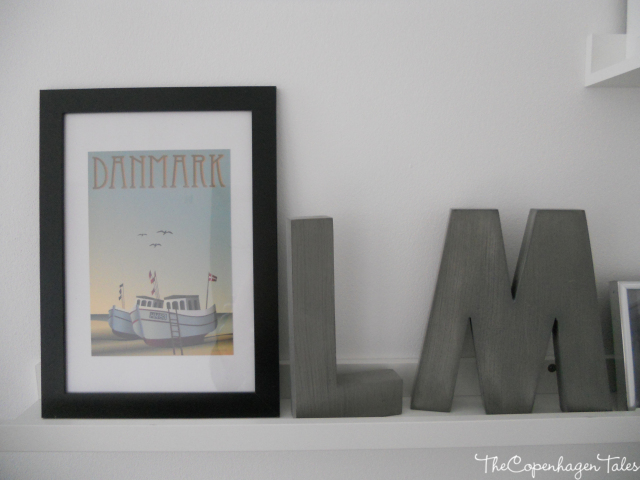For my own picture wall, I decided to have a nice mix of prints and photos, and I added the two wooden letters for our initials L and M that we once got for a christmas present, to mix things up a little bit.